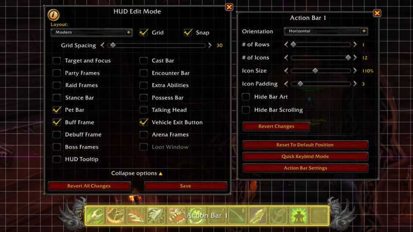Одним из элементов HUD, с которым пользователям будет наиболее интересно взаимодействовать, будут настройки панели действий. Панели действий содержат способности персонажей, которые можно использовать нажатием клавиши или щелчком мыши. и возможность настраивать их в World of Warcraft. Чтобы приступить к настройке панелей действий: