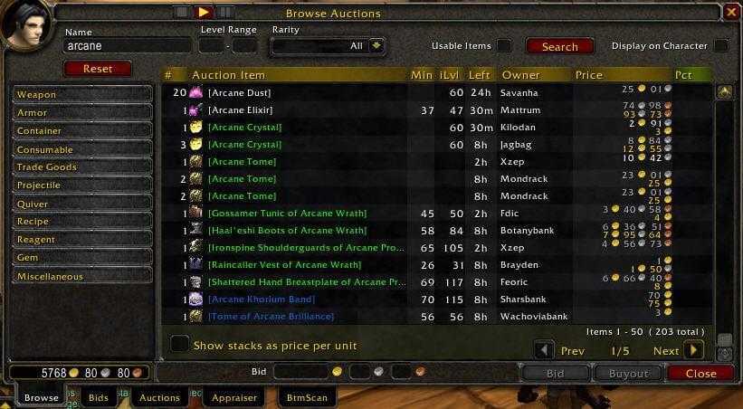Если вам хочется заработать немного золота в World of Warcraft, Auctioneer станет вашим лучшим другом. Он полностью преобразовывает интерфейс аукциона и может сканировать рынок для отслеживания ставок, размеров выкупа и количества продаваемых товаров. Проще говоря, он дает вам всю информацию, необходимую для принятия осознанных решений о покупке и продаже вещей на аукционах.