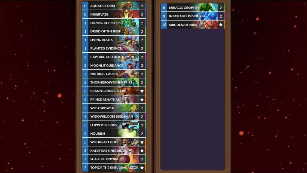 Колода очень мощная, но и создана не на основе какого-нибудь комбо, а за счет большого количества сильных карт, чаще всего легендарок. Поэтому и стоимость соответствующая — 14380 пыли за колоду. Подумайте несколько раз, прежде чем начинать крафтить.