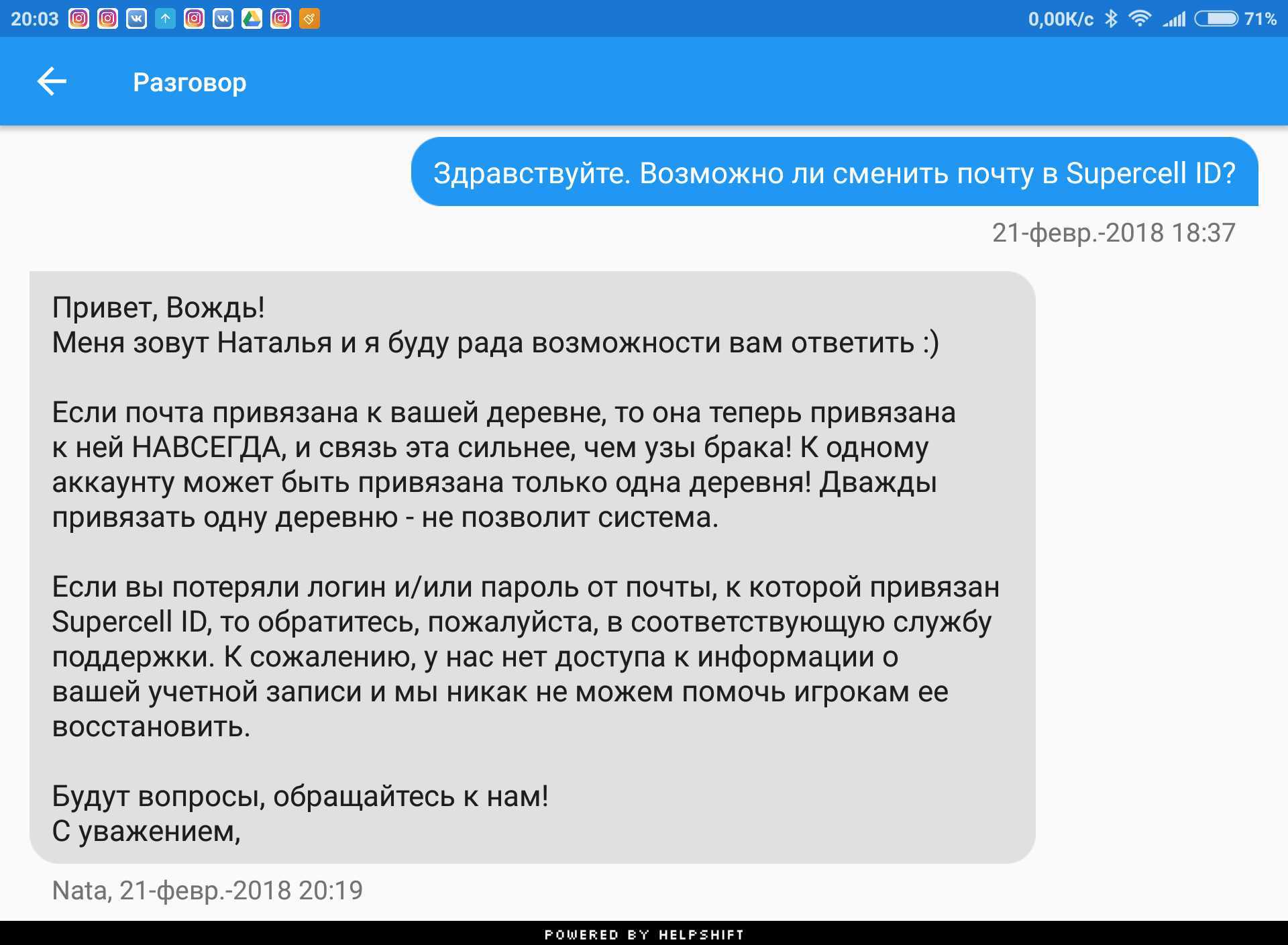 Но не забывайте, чтобы постараться сменить почту в Supercell ID, вам потребуется предоставить не мало важных данных.