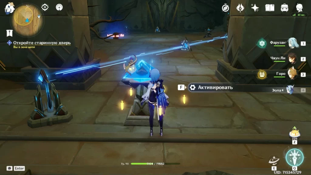 Продолжаем вести искру и активировать по пути пирамидки. У двери останется заюзать активатор и выйти из этого помещения.