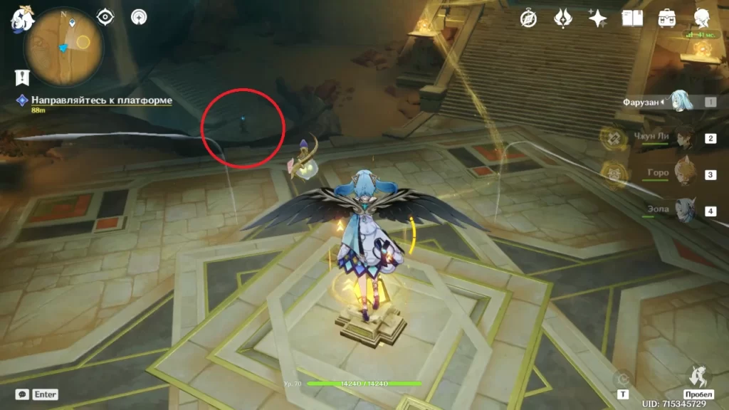 Нужно активировать пять дендро-колонн. Три из них находятся в углублениях на больших колоннах за сундуком. По времени они неограничены и будут активны все время.
