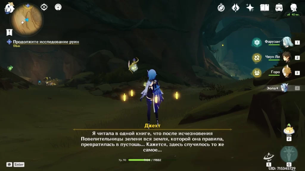 Далее идет «Песня ростка». Песня из этого квеста нужна, чтобы наполнять пустые сосуды Дендрогранумов. Это позволит призывать Здоровые Дендрогранумы, которые могут активировать некоторые висящие Дендро объекты. В пещере нужно будет идти по воде на лодке (придется прерваться один раз, так как лодка не может пройти по водопаду). Для очищения зоны Увядания песня ростка не требуется. Во сне васары после уничтожения врагов пройдите в дверь, активируйте цепь из висящих Дендро объектов обычными Дендрогранумами, затем сыграйте песню сосуду для Здорового Дендрогранума. С его помощью активируйте центральный Дендро объект, чтобы снять пузырь. Встаньте на платформу и ждите, пока она Вас поднимет. Придется снова сражаться с плесенниками.