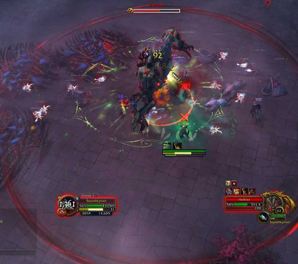 - На протяжении всего боя Халкиас будет наложить Sinlight Visions на всех, кто находится за пределами красного круга.