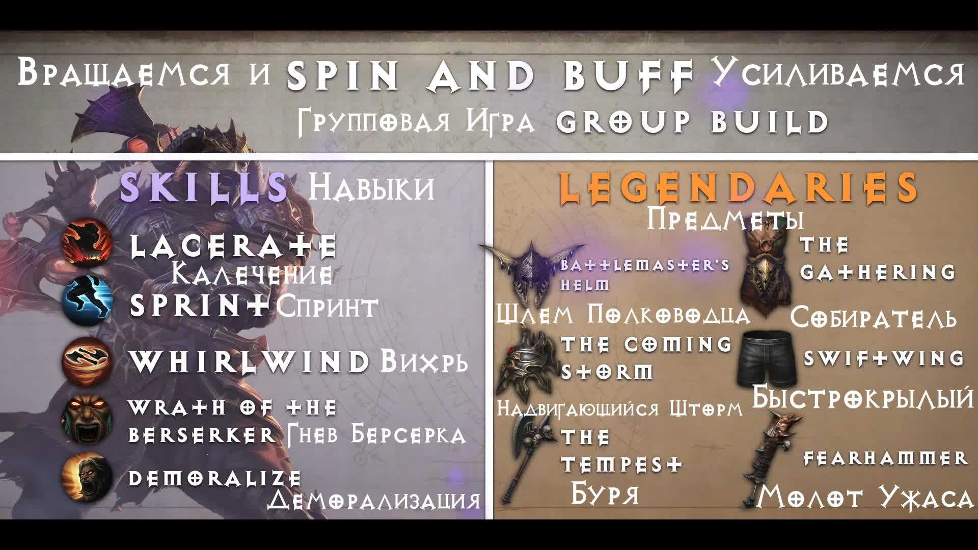 Возможно, один из самых популярных билдов варвара. Он полезен как в бою против ИИ-врагов, так и в битвах против живых игроков. Любое оружие подойдет, кроме тех, что нужно бросать в оппонентов. Никакой синергии между навыками нет, поэтому можно экспериментировать.