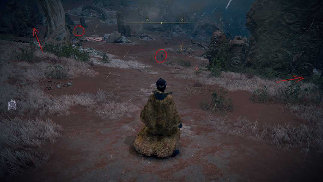 После открытия костра нужно выйти за пределы храма в сторону болота. У самого подножья горы будет белое свечение к порталу.
