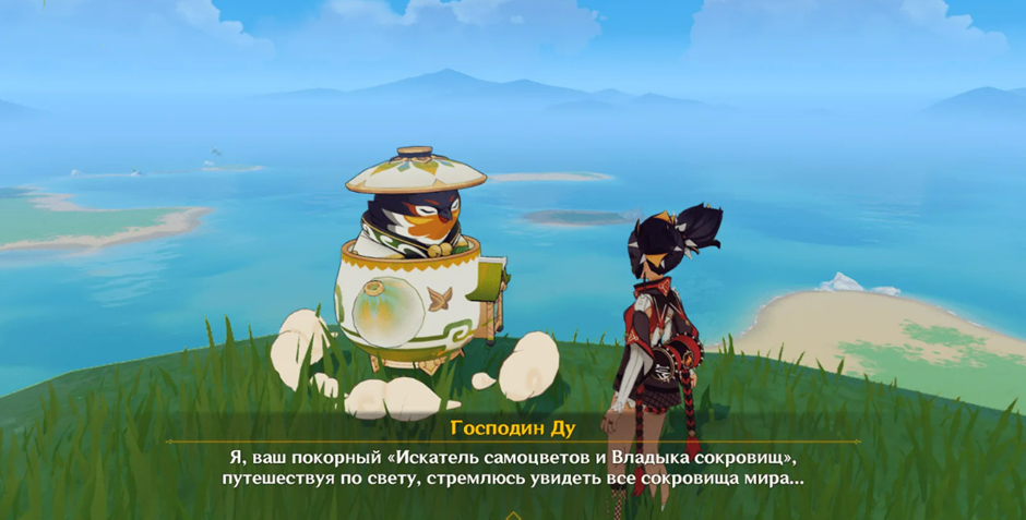 Помимо Пухляша в Чайнике появляется Господин Ду – бродячий торговец, предлагающий игрокам особые предметы кастомизации обители. Персонаж появляется каждую пятницу, когда ассортимент его сокровищницы доступен только хозяину Чайника, и исчезает после выходных, в течение которых Путешественники из других миров могут купить что-то у бродячего торговца.