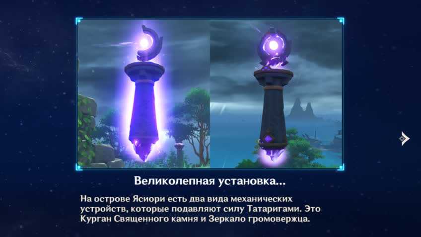 - Зеркало громовержца. Мощный отражатель, перенаправляющий полученный от Кургана Священного камня импульс в необходимом направлении.