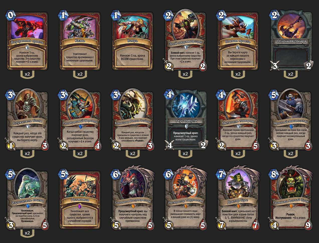 Итак к самой колоде, класс котором Вы решите проходить этого босса неважен, так как вам потребуется просто большое количество толстых существ или тех которые оказывают влияние на стол.