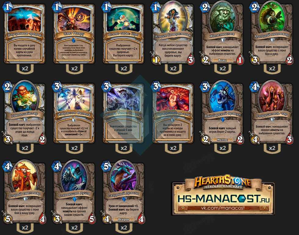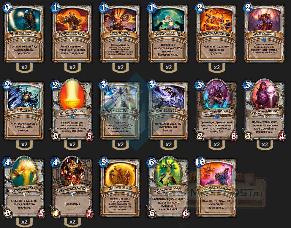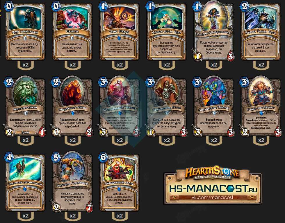 Для победы нам нужна колода, которая сможет повесить эффект Немоты на вражеские Огнекамни. Лучше всего подходит жрец, ведь этот класс обладает самыми эффективными и дешевыми картами Немоты.