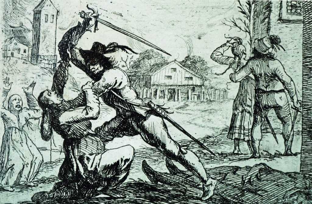 Но самая показательная история произошла двумя годами ранее, в 1552 году, при взятии города Ивуа. Коннетабль Франции Анн де Монморанси, командовавший жандармами, то есть французской рыцарской конницей, решил не допустить союзников-ландскнехтов к разграблению города. Наемники демонстративно проигнорировали приказ, ворвались в город и занялись грабежом. Попытавшиеся остановить погром жандармы были атакованы разъяренными ландскнехтами. Был убит жандармский корнет, и едва не погиб сын коннетабля, которому прострелили шляпу. Стреляя из окон и дверей уже занятых домов, наемники вынудили жандармов бежать и продолжили грабить город.