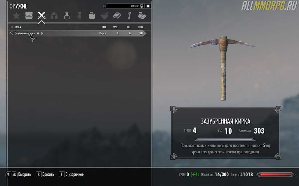 Зазубренная кирка – полезный предмет, используемый для добычи руды. Дополнительно ее можно применять в качестве оружия на низких уровнях. Кирка имеет особое зачарование, повышающее навык «Кузнечное дело» и наносящее по 5 единиц урона противникам от электричества.