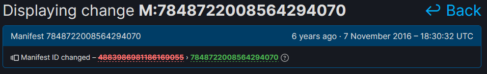 Нам нужен манифест шестилетней давности. Последняя версия хранилища перед обновлением 1.6. Этот манифест имеет ID 7848722008564294070 и вы можете найти его во вкладке Manifests слева.
