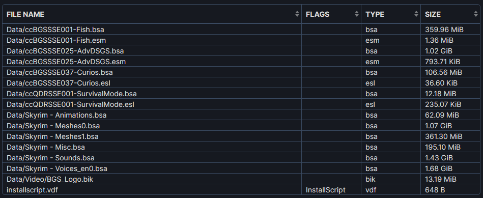 Начнём с 489831 Skyrim Special Edition diskЭто хранилище содержит внутренности каталога Data, но не этот манифест нам нужен: