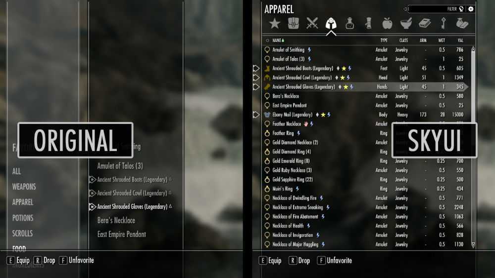 SkyUI (SE) является изменением игрового интерфейса в игре Skyrim SE на более удобный с расширенными возможностями.