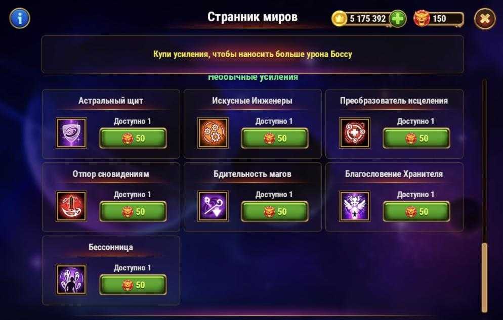 После четвертого дня нужно закупиться усилениями для прохождения боссов за золото и эмблемы доблести. Причем на каждого босса — свои усиления, но босс пока один, разработчики не спешат вводить новые. Если эмблемы не потрачены, то на следующую неделю они не переходят, нужно будет бить прислужников снова и зарабатывать эти очки.